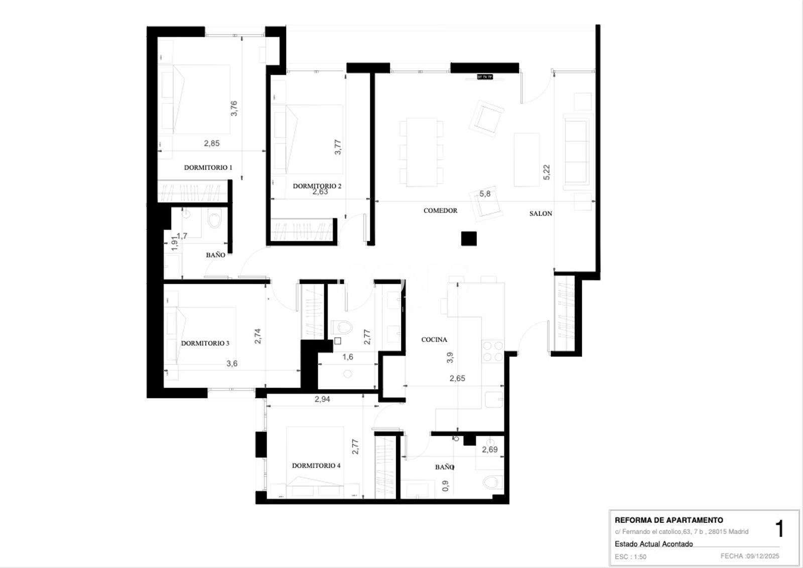 Flat for sale in Madrid, with 1,453 ft2, 4 rooms and 3 bathrooms, Garage, Lift, Furnished and Air conditioning.