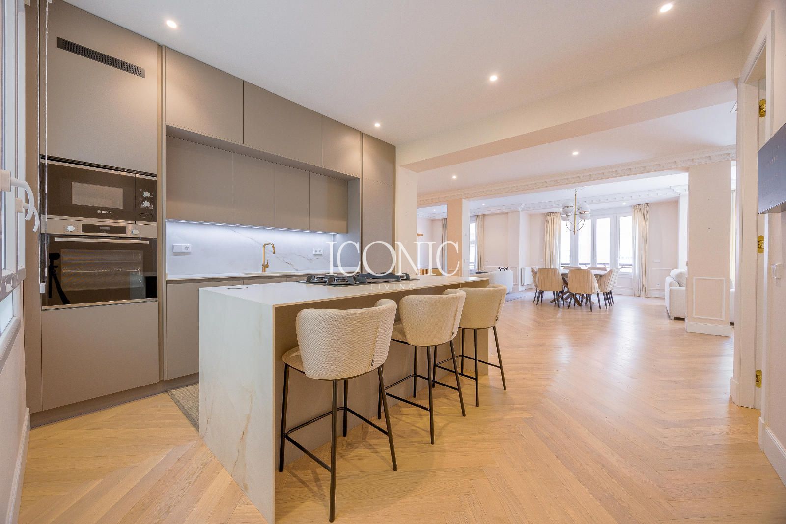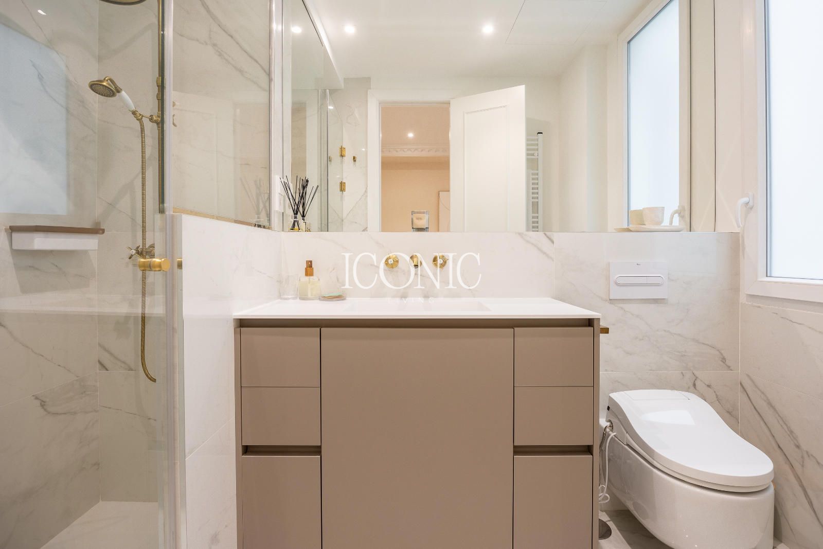 El piso dispone de cuatro dormitorios, todos ellos equipados con baño en suite, lo que aporta un nivel de privacidad y comodidad necesario para un hogar moderno. Además, cuenta con un aseo de cortesía, ideal para recibir visitas sin comprometer la intimidad de las habitaciones principales. El edificio cuenta además con un portero, lo que aporta un extra de seguridad y comodidad a la vida diaria.
