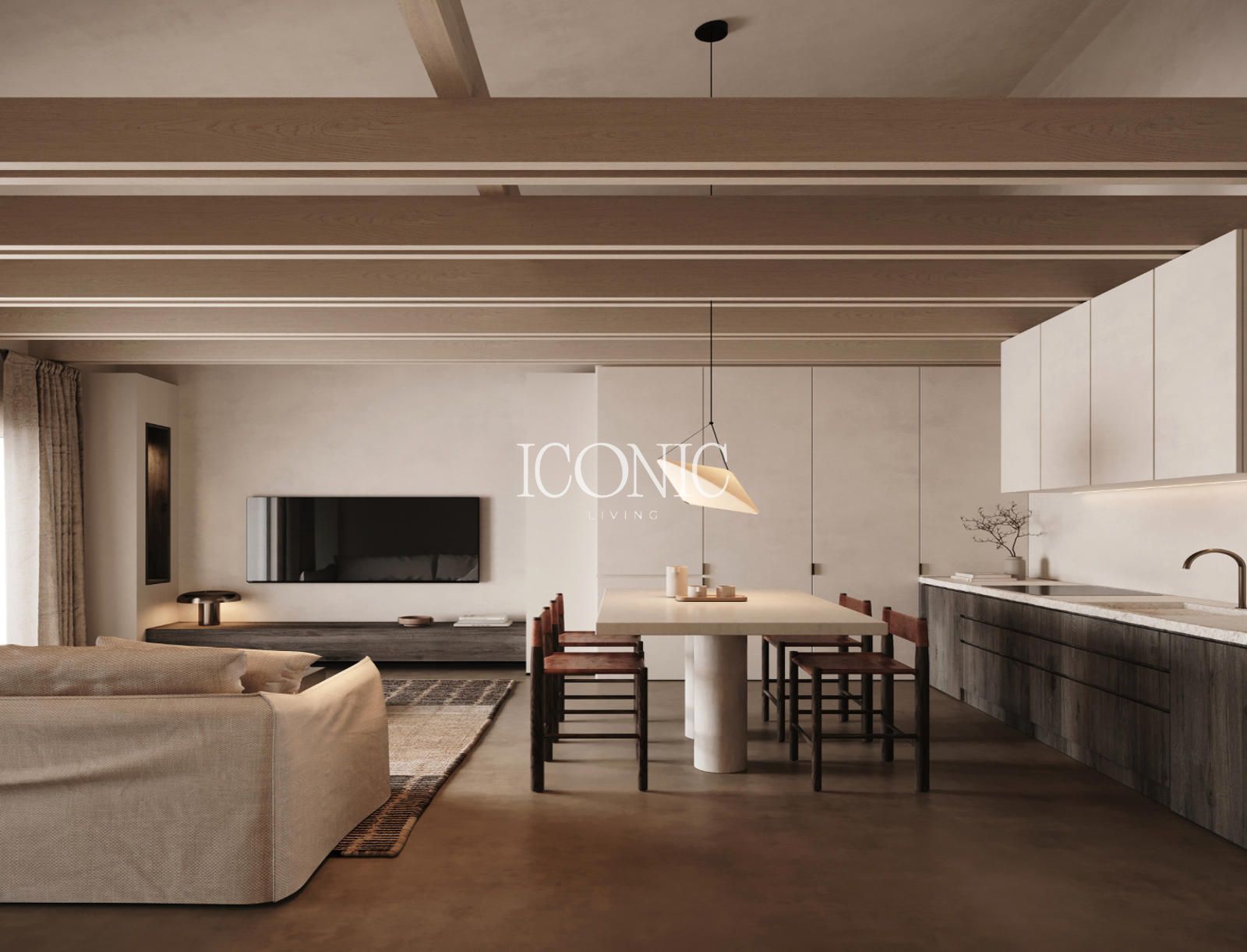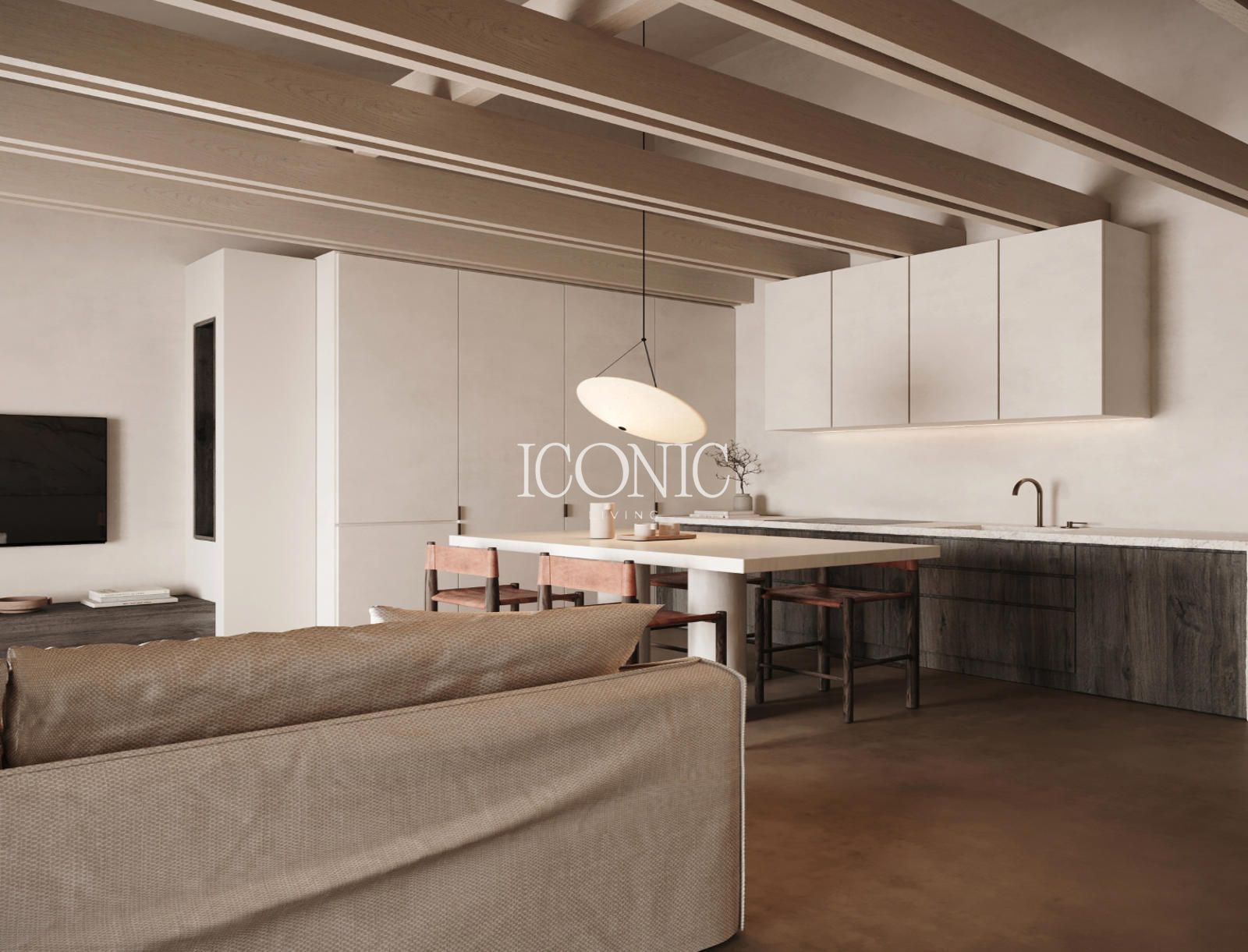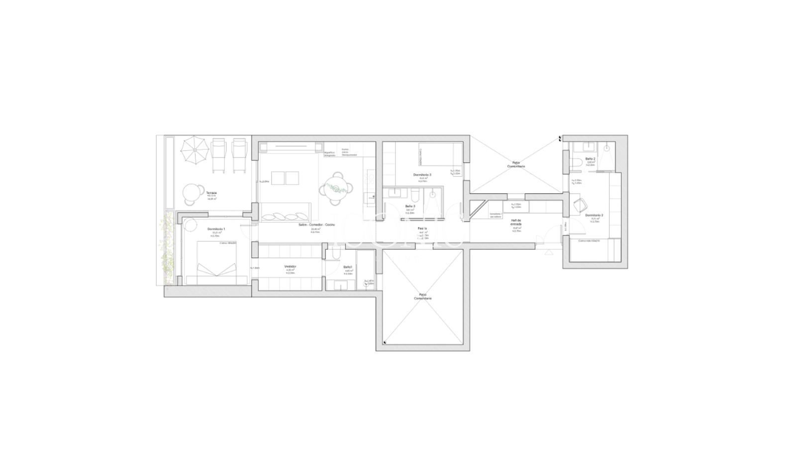 Tres habitaciones y tres baños completos. La distribución actual facilita la creación de espacios diferenciados para vivienda familiar o uso mixto. La reforma está orientada a optimizar la distribución, mejorar la eficiencia energética y adaptar la estética a un perfil contemporáneo sin perder el carácter clásico de la finca.