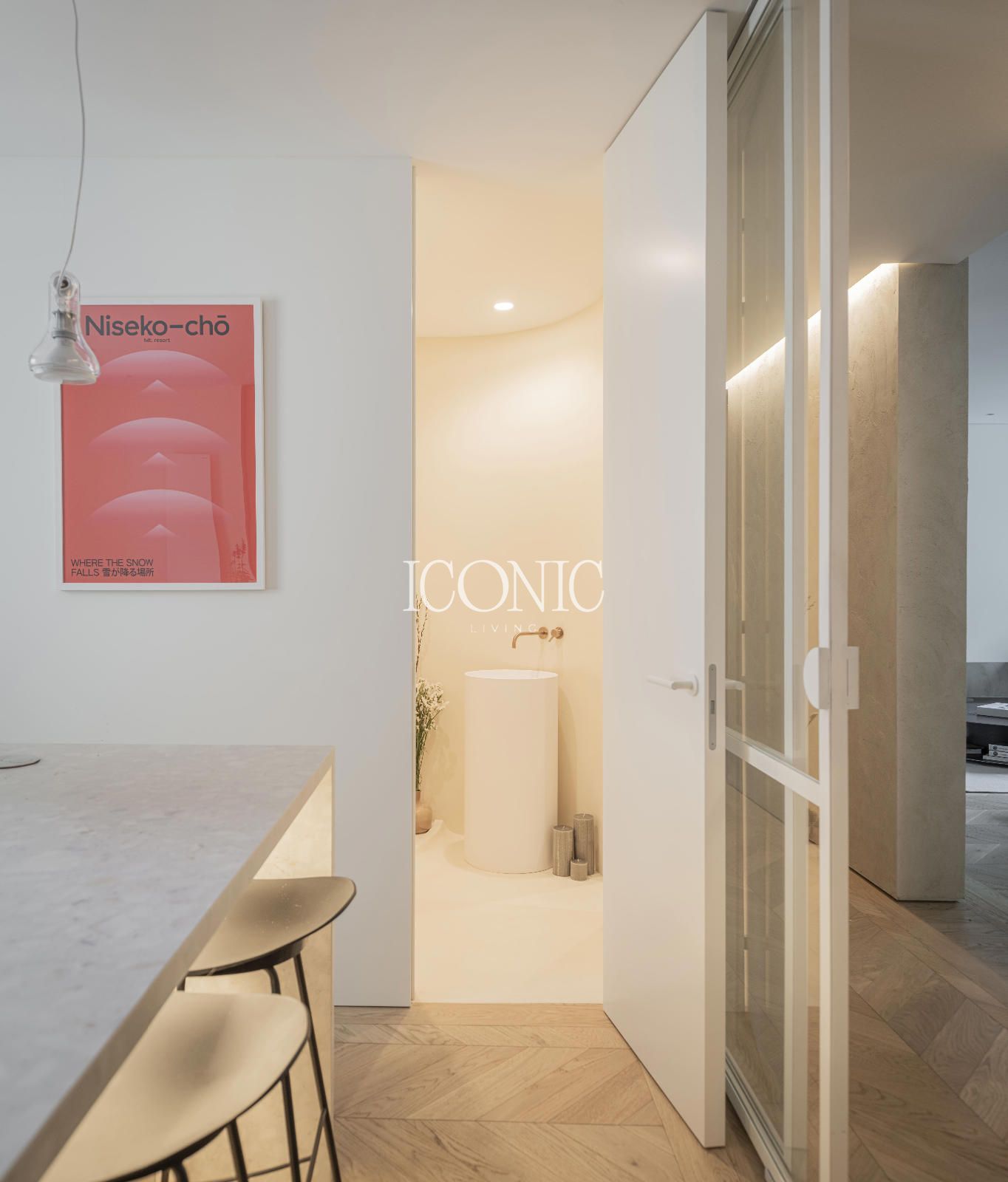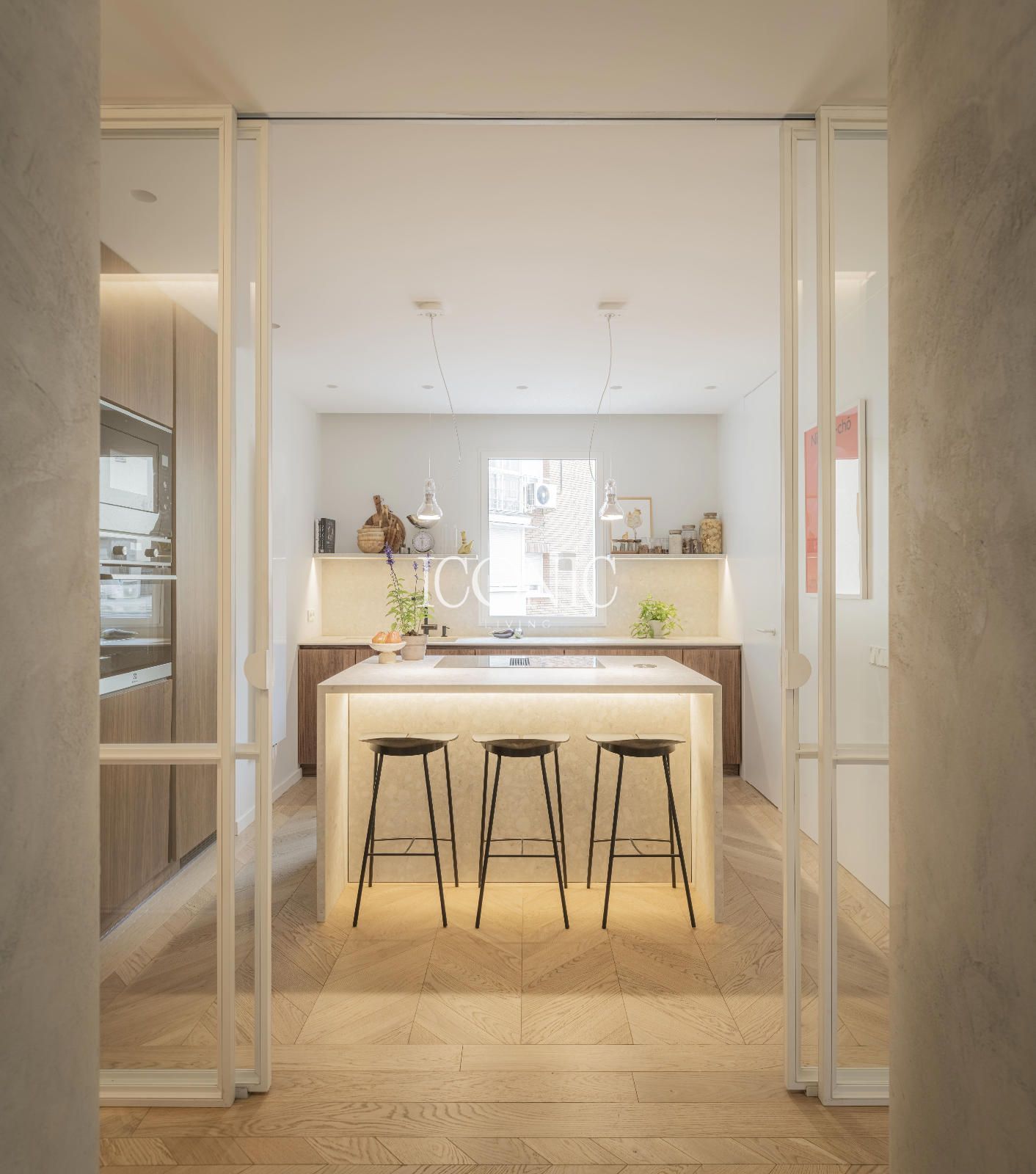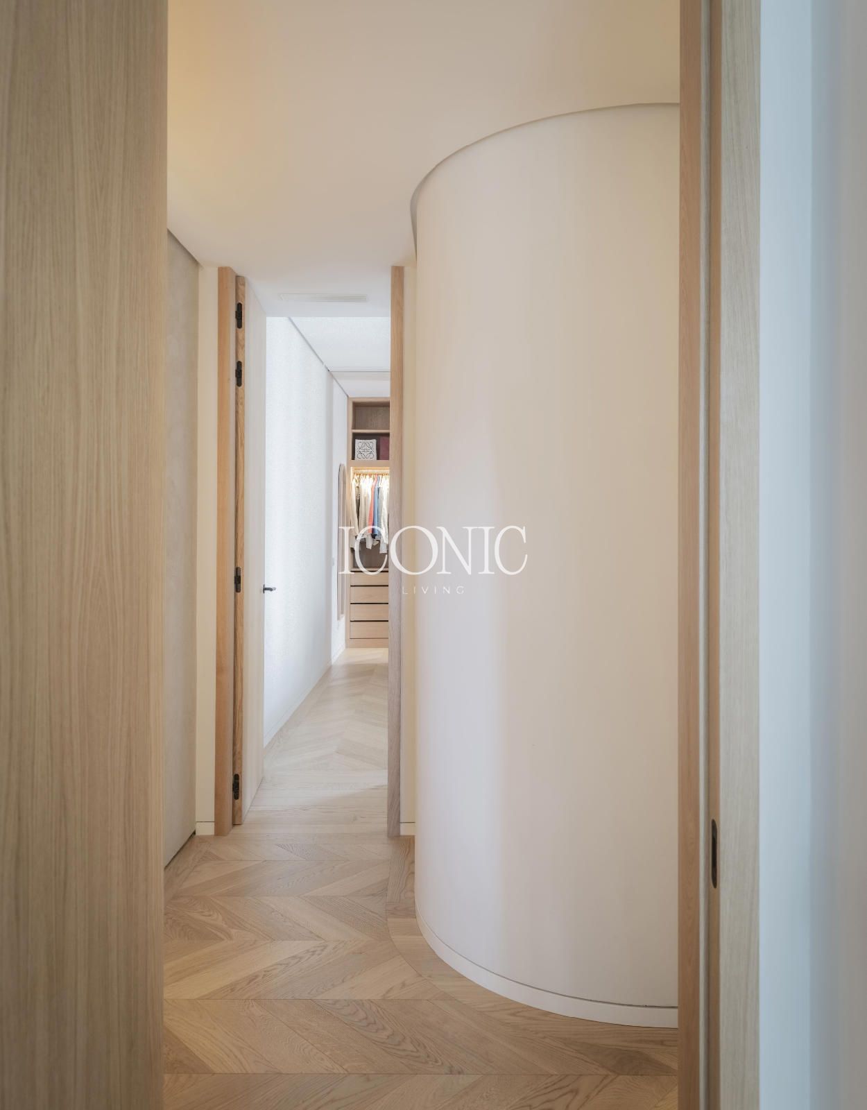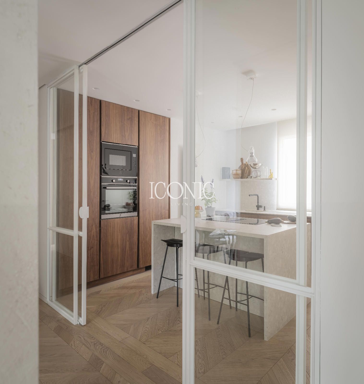La distribución ha sido concebida para ofrecer funcionalidad y versatilidad. El área social cuenta con un amplio salón comedor, conectado a una cocina independiente con isla central y zona de lavandería, que puede adaptarse como cuarto de servicio. Los balcones abren el espacio hacia el exterior, mientras que la zona privada se ha diseñado para garantizar máxima comodidad y privacidad, diferenciando claramente las áreas de uso diario y descanso.