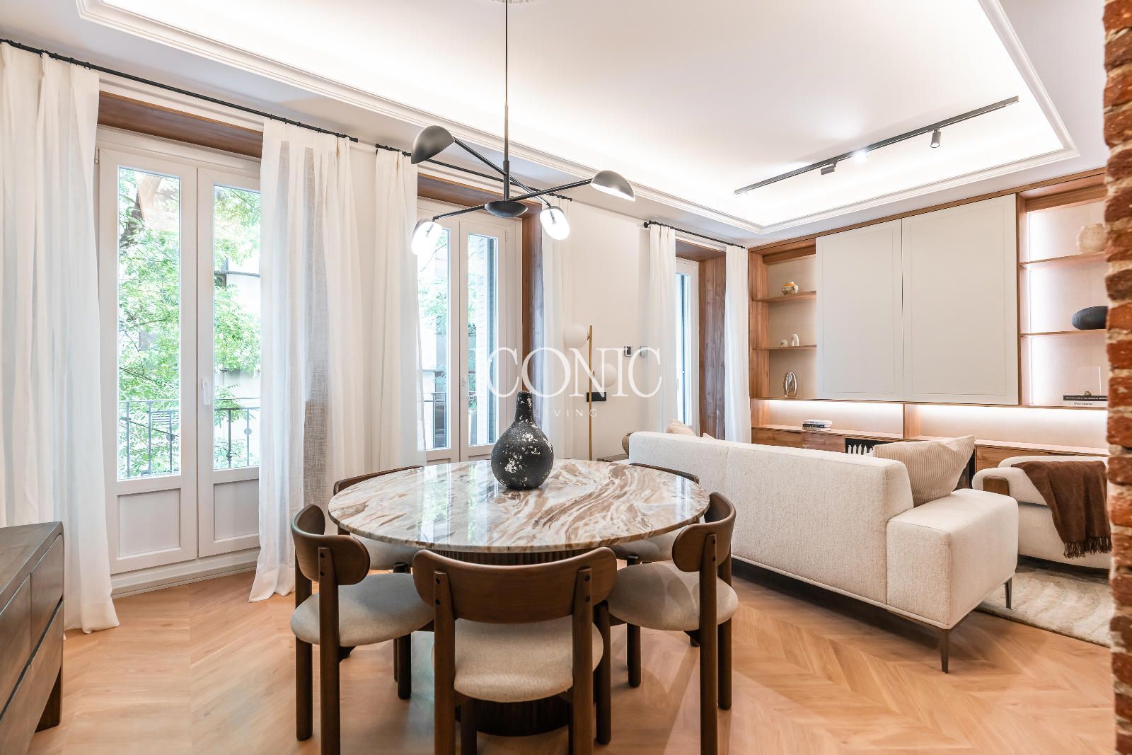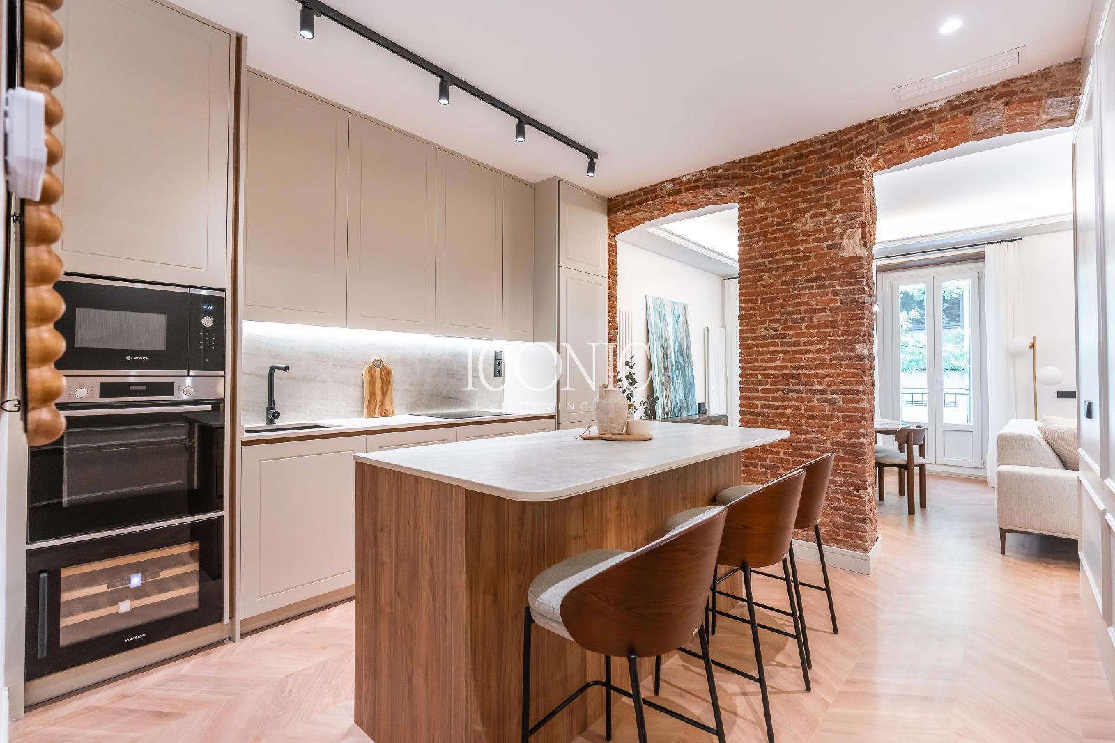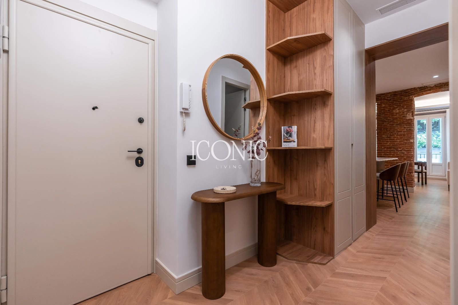 Ubicado en un elegante edificio señorial con ascensor y servicio de portería, este piso de 105 m² en primera planta ha sido recientemente reformado, respetando su encanto exterior con dos balcones y un mirador que enmarcan agradables vistas a la calle Alcántara. La luz natural y los detalles arquitectónicos clásicos conviven ahora con una estética renovada que mantiene su carácter distintivo y atemporal.