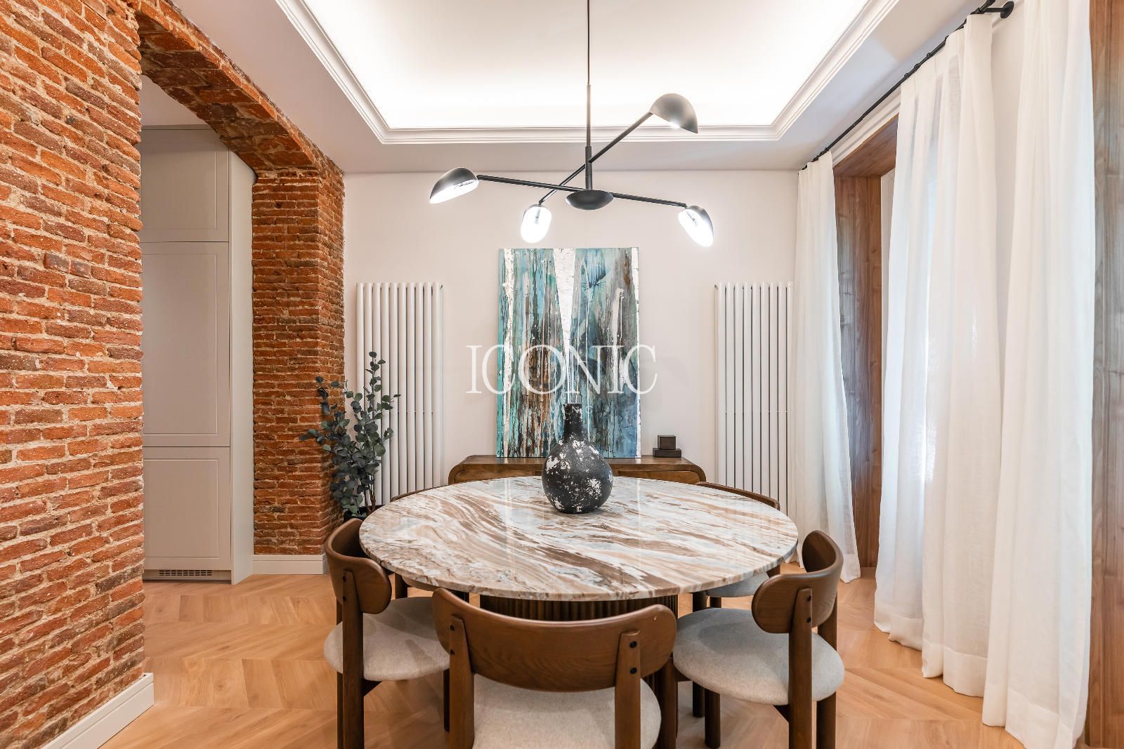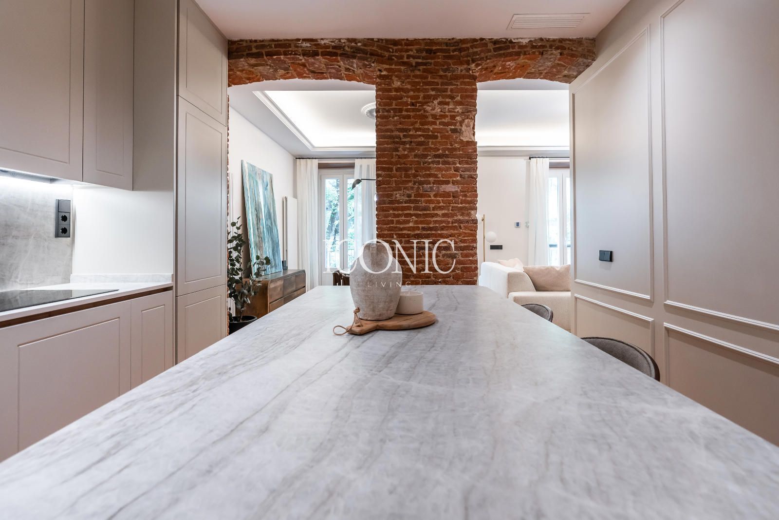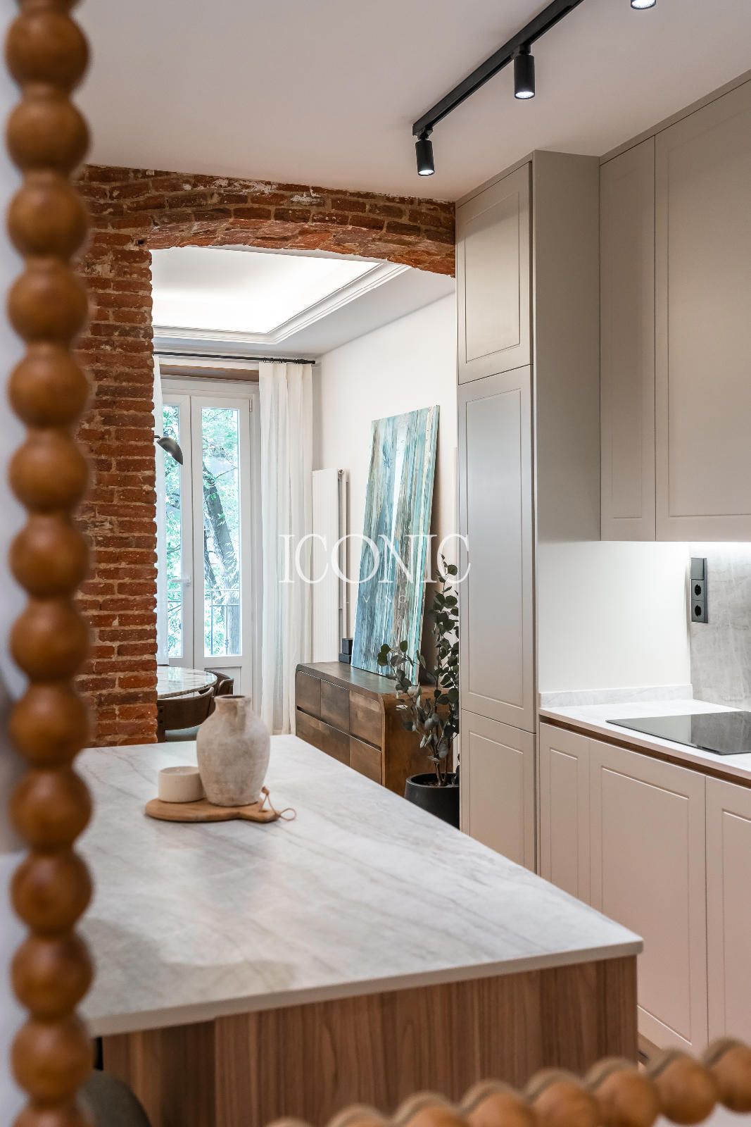 Ubicado en un elegante edificio señorial con ascensor y servicio de portería, este piso de 105 m² en primera planta ha sido recientemente reformado, respetando su encanto exterior con dos balcones y un mirador que enmarcan agradables vistas a la calle Alcántara. La luz natural y los detalles arquitectónicos clásicos conviven ahora con una estética renovada que mantiene su carácter distintivo y atemporal.