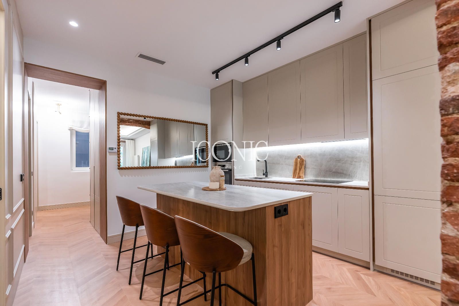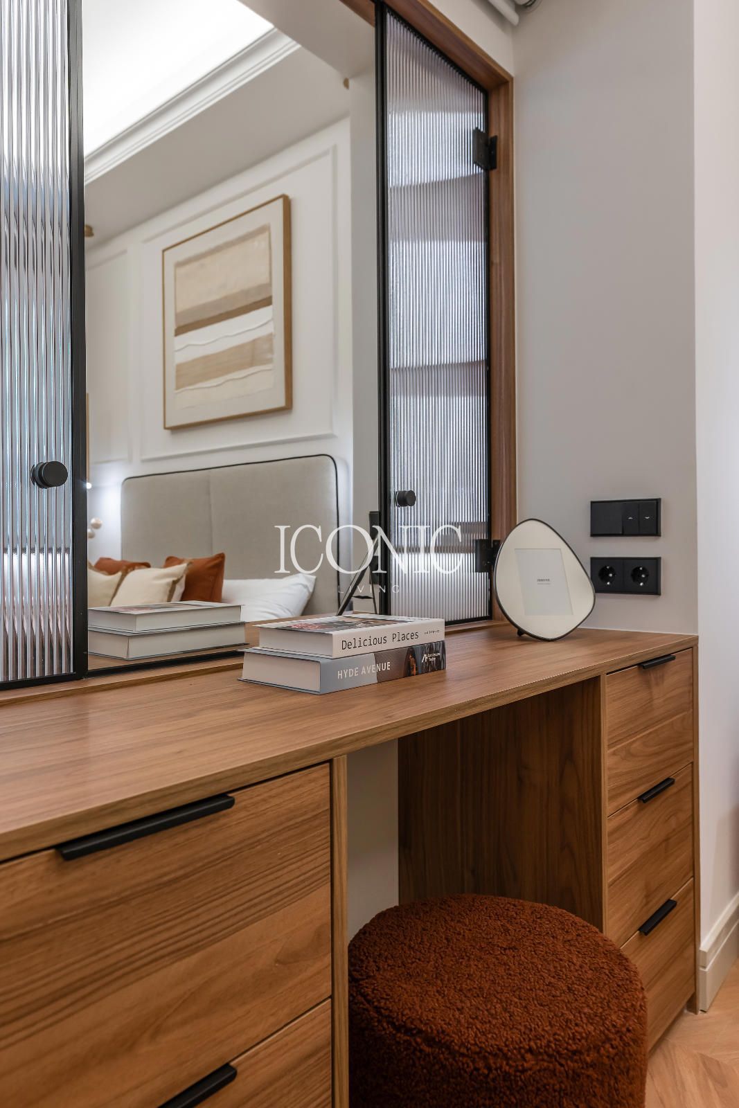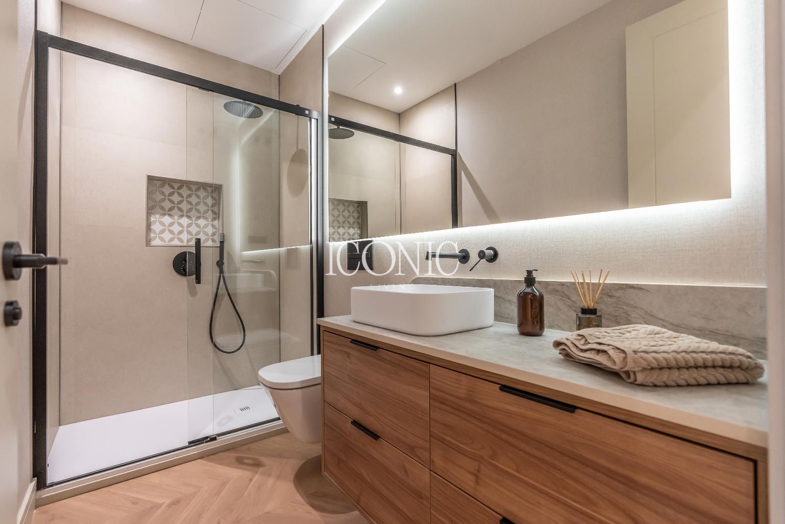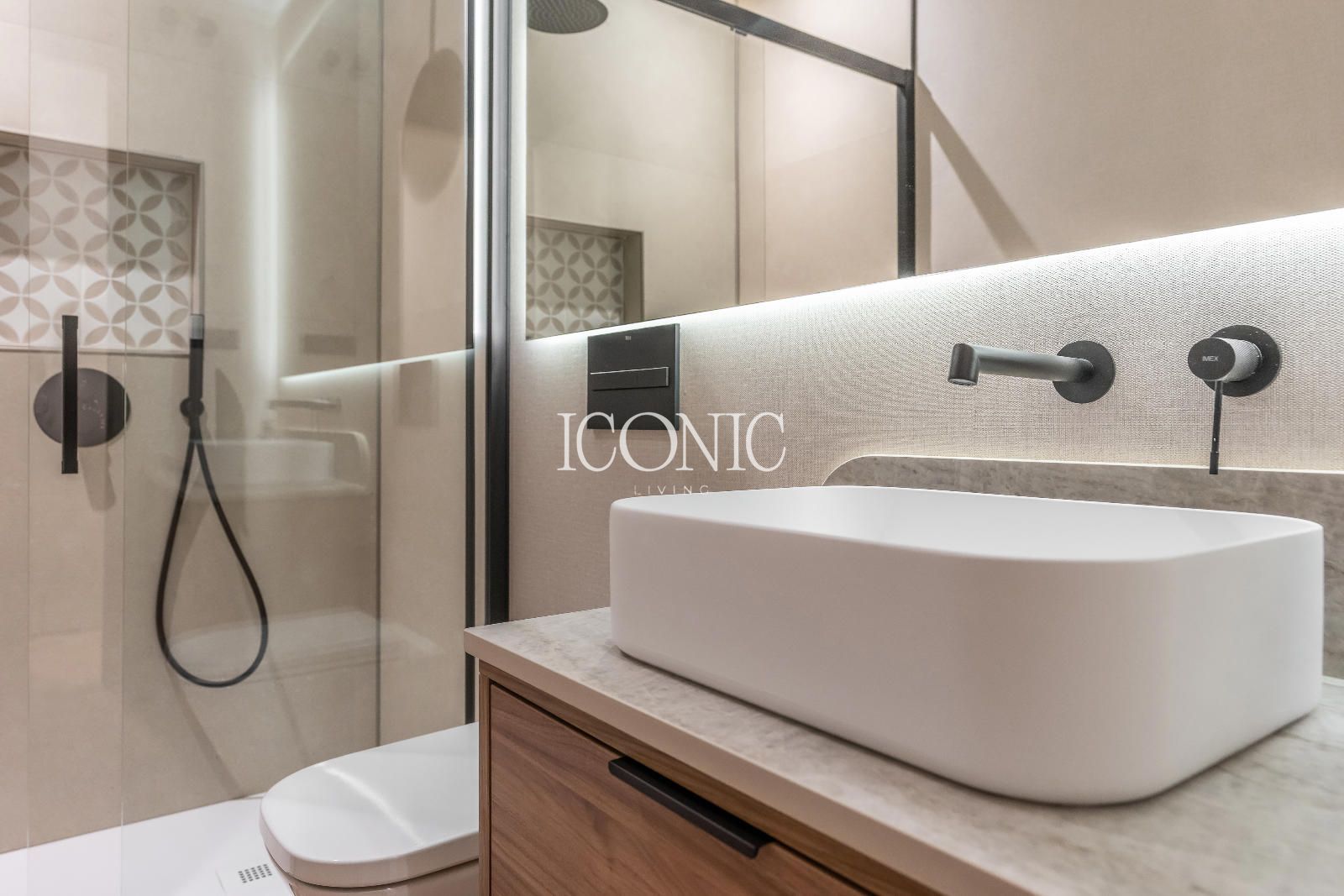 La reforma incorpora una distribución de dos dormitorios y dos baños completos, incluyendo una suite principal que combina líneas contemporáneas, materiales de alta calidad y un baño privado que aporta confort y funcionalidad. Cada espacio ha sido repensado para optimizar circulación, almacenamiento y uso diario.