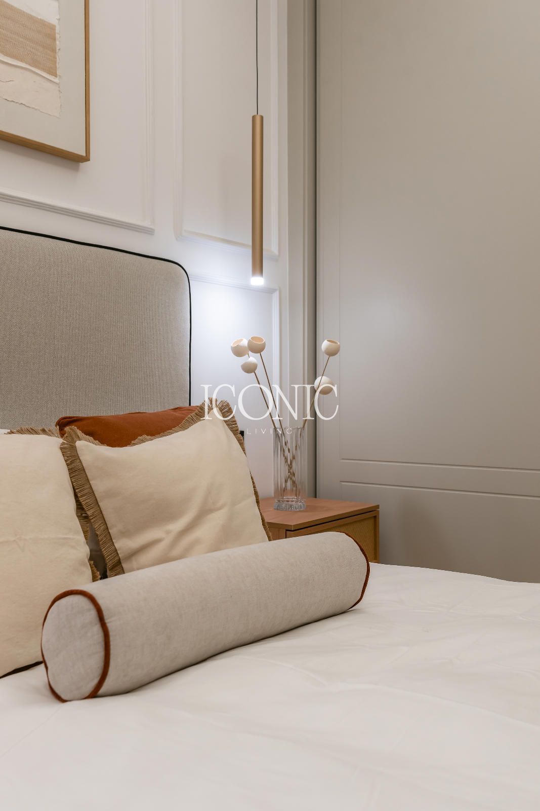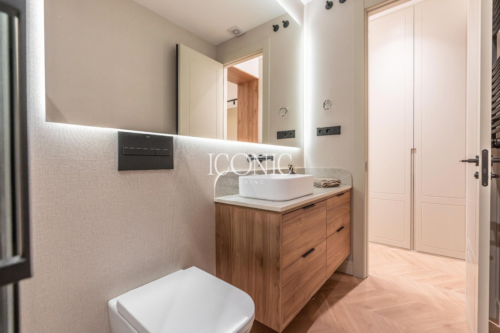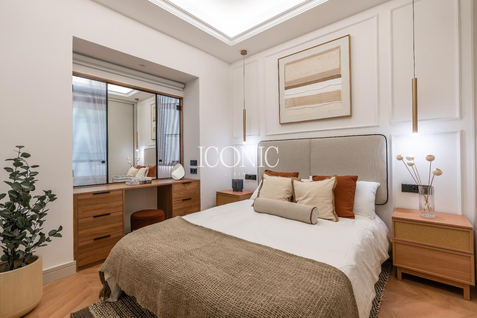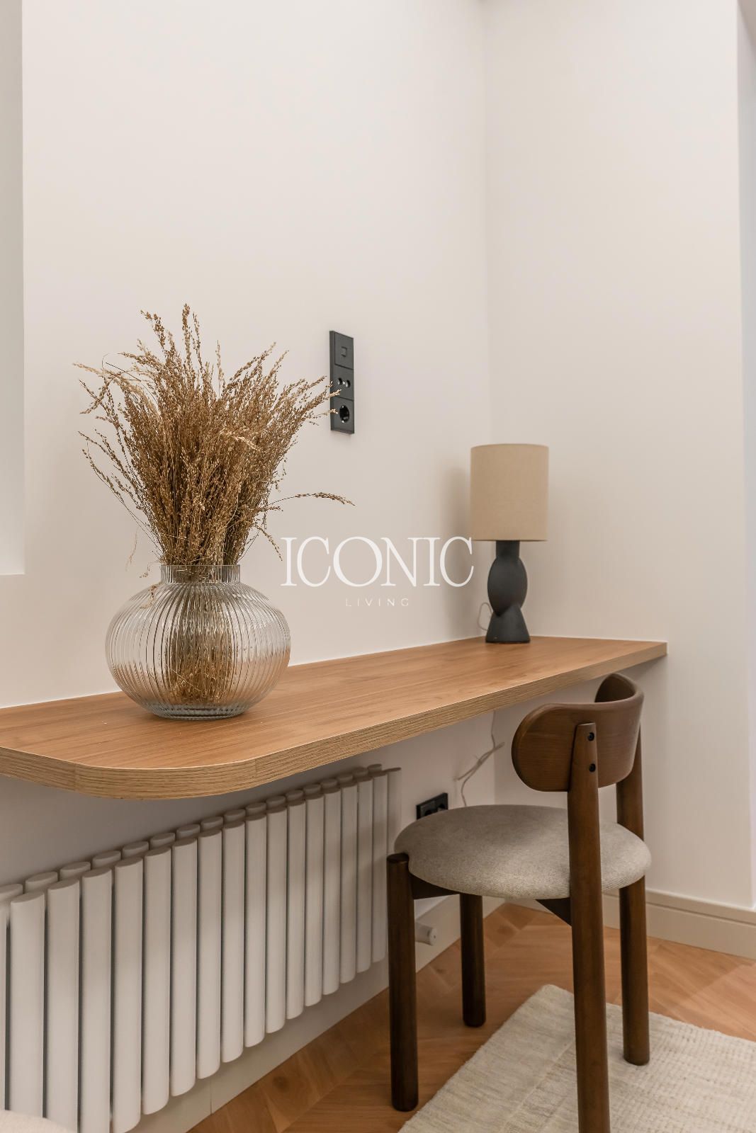 La reforma incorpora una distribución de dos dormitorios y dos baños completos, incluyendo una suite principal que combina líneas contemporáneas, materiales de alta calidad y un baño privado que aporta confort y funcionalidad. Cada espacio ha sido repensado para optimizar circulación, almacenamiento y uso diario.