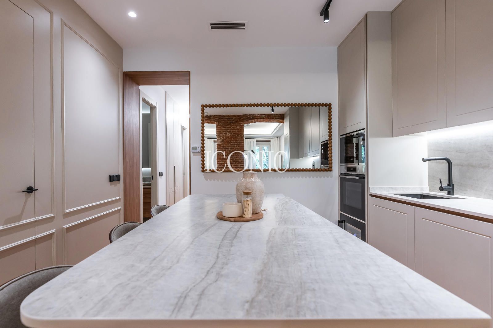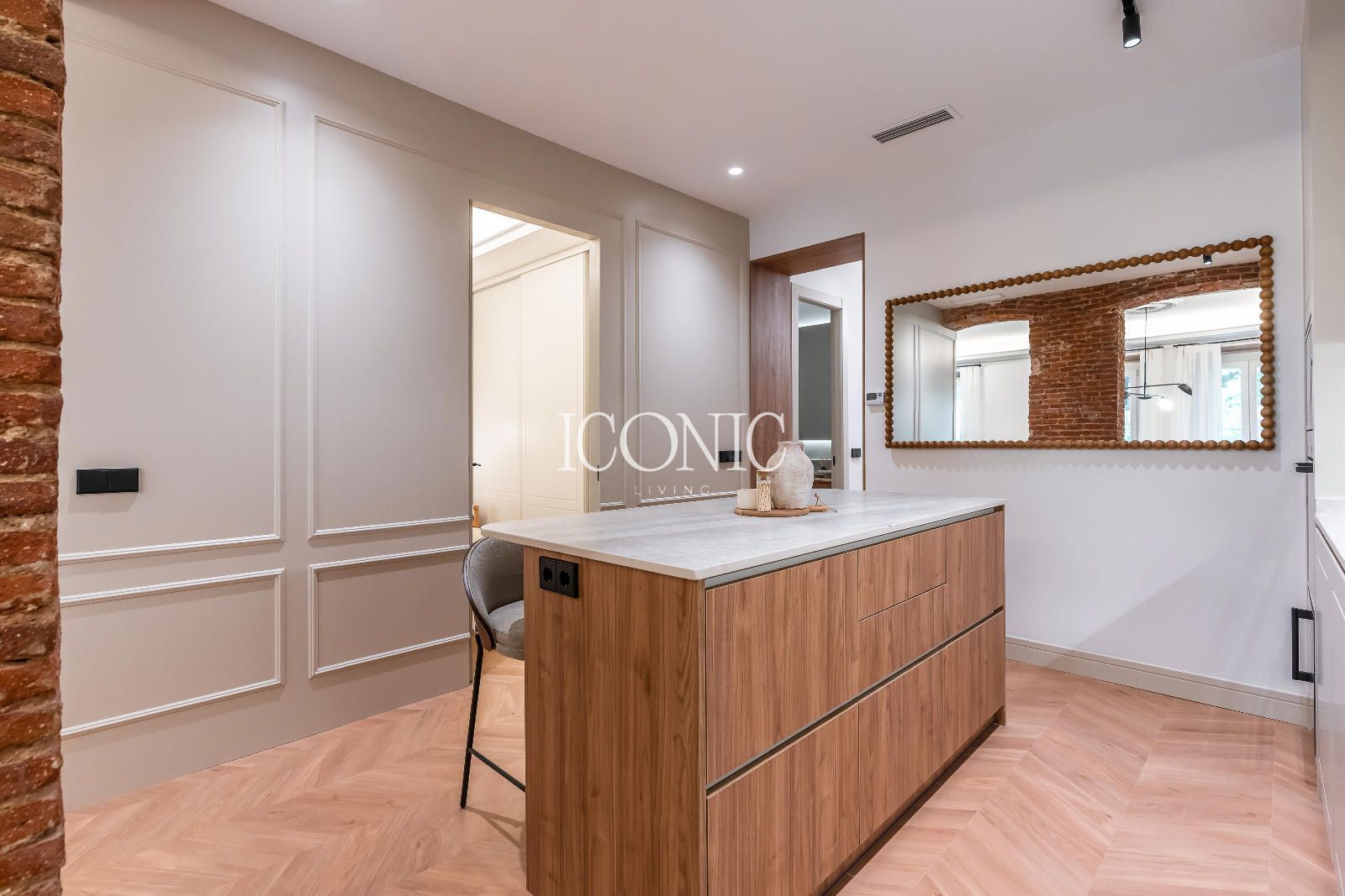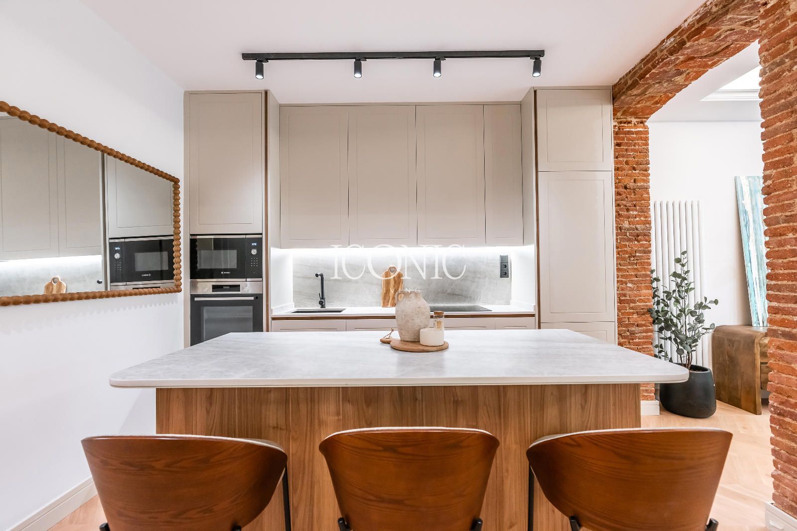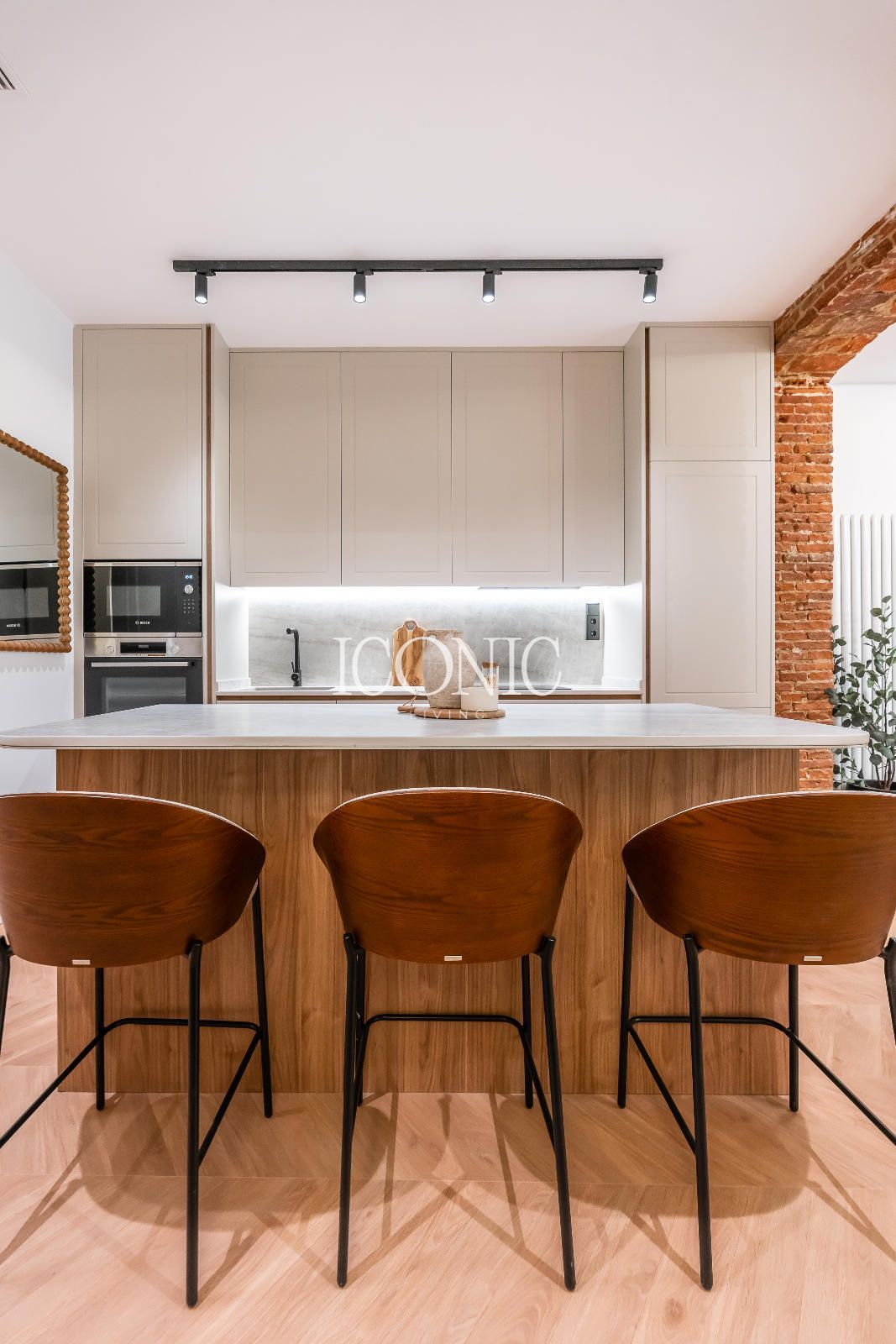 La cocina americana con isla, abierta al salón, potencia la sensación de amplitud y crea un ambiente moderno y acogedor. Con acabados de nivel superior y una integración fluida entre zonas sociales y privadas, este inmueble fusiona la esencia de lo clásico con el confort y la estética del lujo actual.