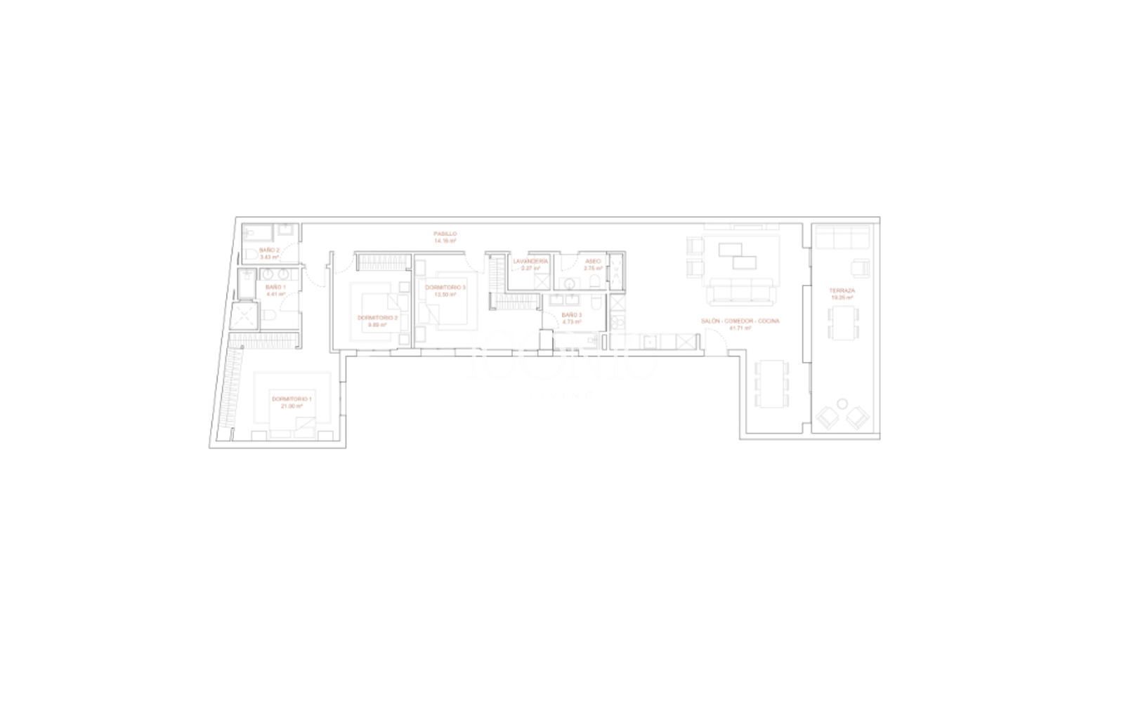 La vivienda se distribuye en tres amplias habitaciones, todas con baño en suite, además de un aseo de cortesía, ofreciendo privacidad y comodidad en cada estancia. Los espacios comunes, amplios y funcionales, incluyen un elegante salón con acceso directo a la terraza, una cocina moderna totalmente equipada y acabados de alta calidad que reflejan un estilo sofisticado y actual.