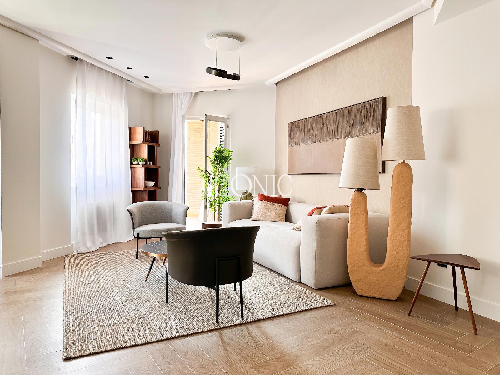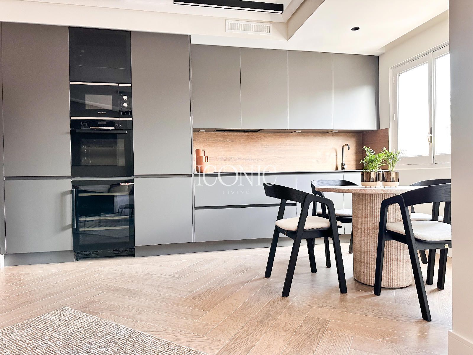 La propiedad cuenta con dos dormitorios, dos baños completos y una terraza amplia que se convierte en uno de los grandes atractivos del piso, perfecta para disfrutar de la calma urbana. La reforma y la decoración actual aportan una estética elegante y atemporal, con la posibilidad de adquirir el mobiliario y el interiorismo por 25.000 € adicionales.