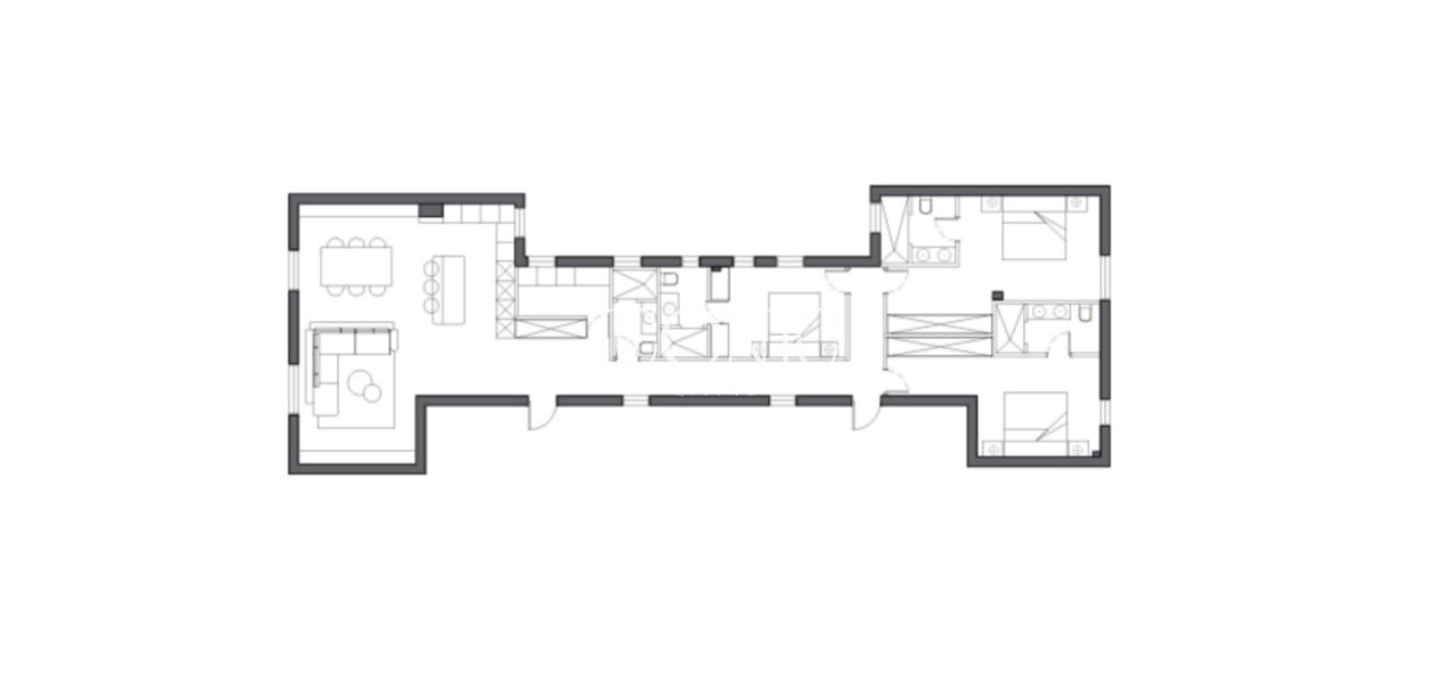 Con una superficie de 198 m², la vivienda ofrece una distribución funcional que separa con equilibrio la zona de día y la de noche. El amplio salón-comedor con cocina integrada y lavandería conforman un espacio social moderno, abierto y lleno de luz, mientras que los tres dormitorios en suite y el baño de cortesía garantizan privacidad y confort en la zona más tranquila del piso.