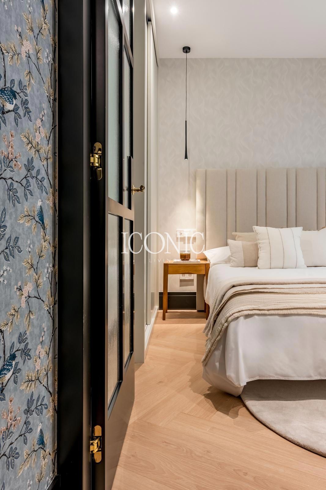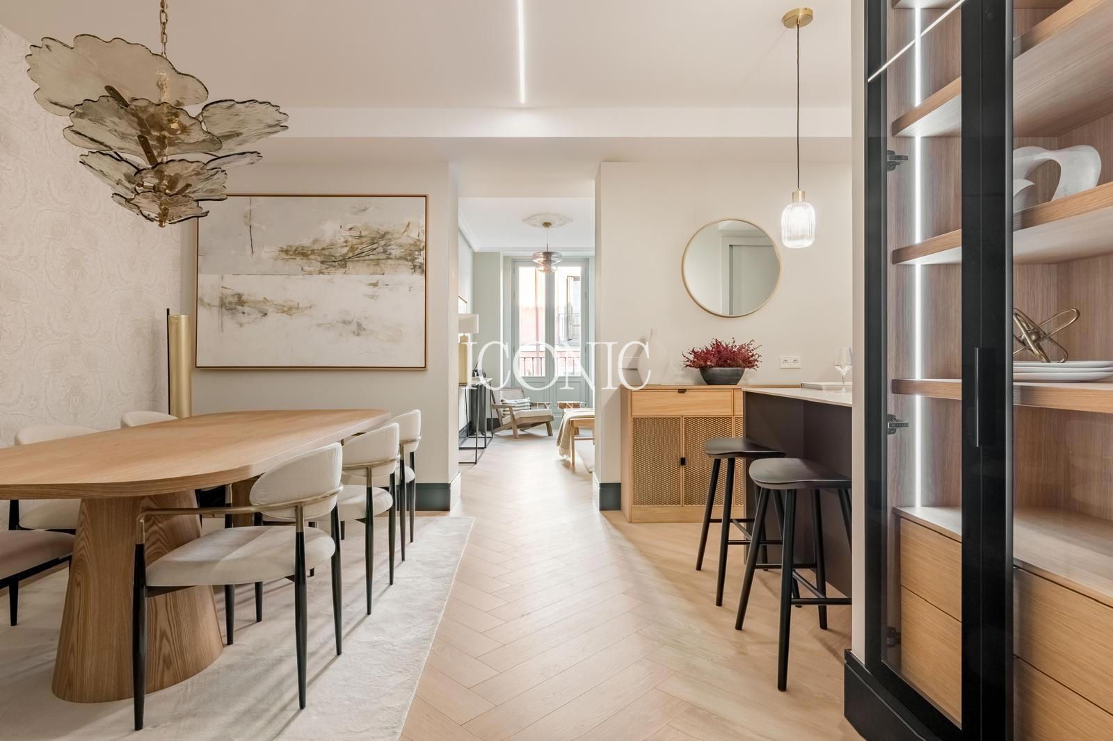 El piso cuenta con tres dormitorios, dos de ellos con baño en suite, además de un tercer cuarto de baño independiente. La cocina, equipada con electrodomésticos de alta gama, se integra con elegancia en la zona de día, aportando un estilo contemporáneo ideal tanto para el día a día como para recibir invitados. La calefacción individual por radiadores garantiza eficiencia energética y máximo control del confort en cada estancia.