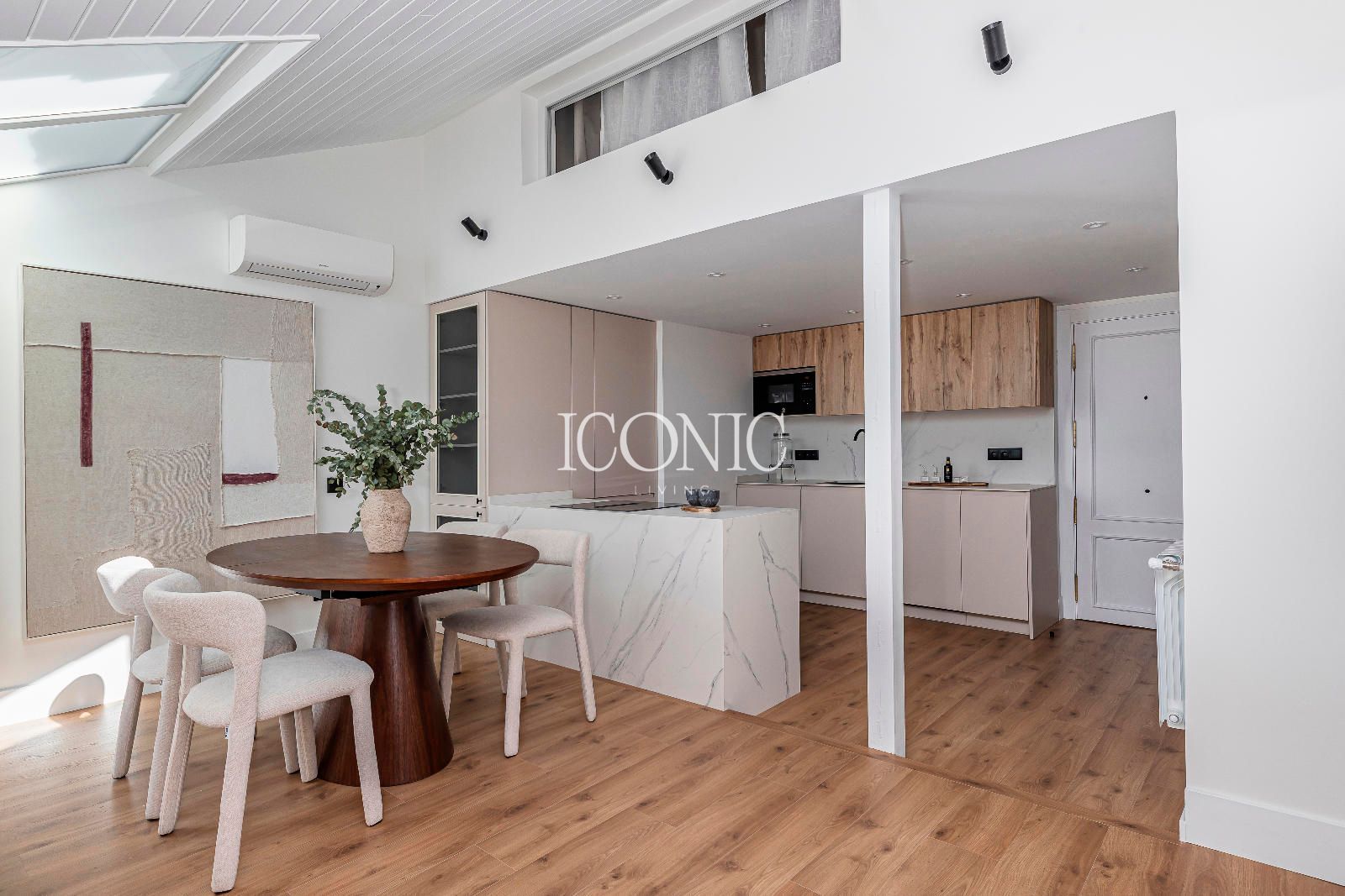 La propiedad dispone de una superficie de 77 m² cuidadosamente distribuida, con un dormitorio, un baño completo y un aseo de cortesía, un elemento diferencial poco habitual en este tipo de viviendas. El inmueble ha sido reformado, combinando funcionalidad y diseño, e incorpora aire acondicionado, calefacción individual, ascensor y servicio de portería, asegurando un alto nivel de comodidad y seguridad. Destacan especialmente sus dos terrazas, un valor añadido excepcional que permite disfrutar de espacios exteriores privados en pleno centro urbano.