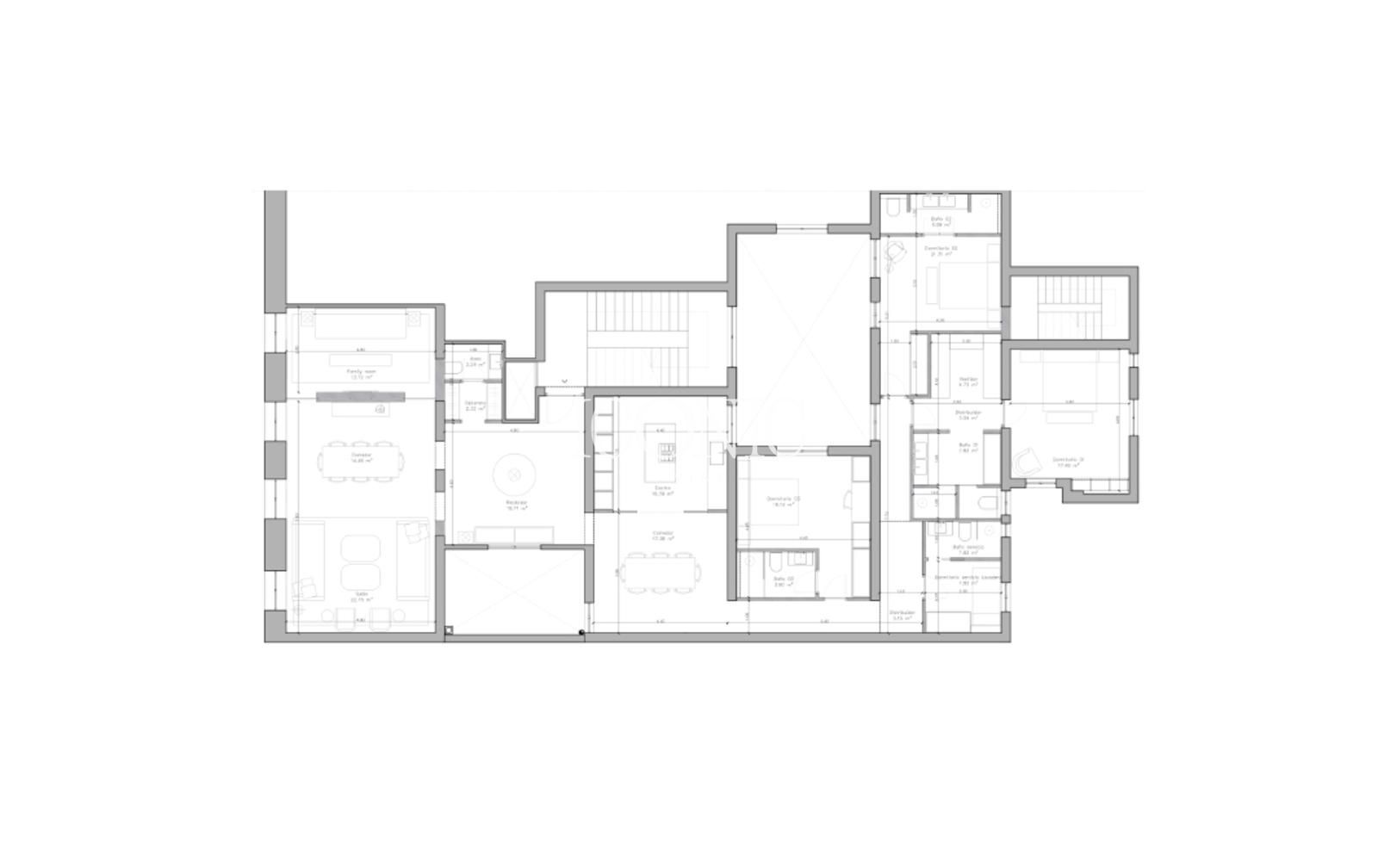 Actualmente en estado para reformar, la vivienda permite múltiples configuraciones de alto nivel, adaptables a distintos estilos de vida. Existe la posibilidad de distribuirla en tres o cuatro amplios dormitorios en suite, con aseo de cortesía, dormitorio de servicio, zona de lavandería y una generosa área de día con grandes ventanales. Las distintas opciones de proyecto permiten tanto una distribución con tres suites más servicio, como una propuesta de cuatro suites con espacios adicionales como TV room o laundry, siempre priorizando amplitud, funcionalidad y confort.
